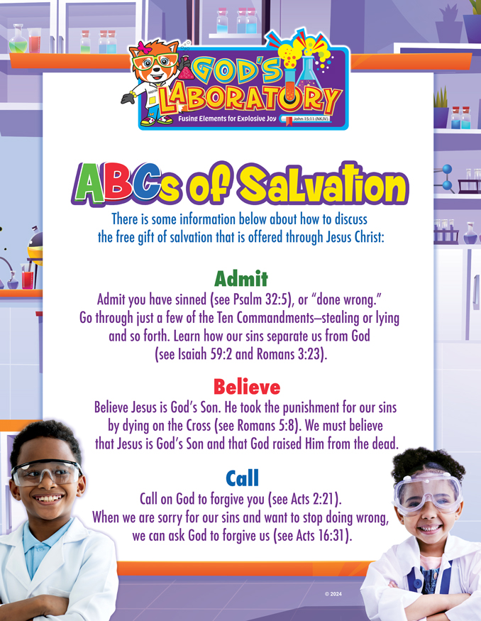 The VBS Poster Set features seven full-color images large enough to read easily on wall displays. Posters include images from the five daily lessons with Scripture references, the ABCs of Salvation, and our VBS theme. Posters are great for VBS decoration or classroom display.